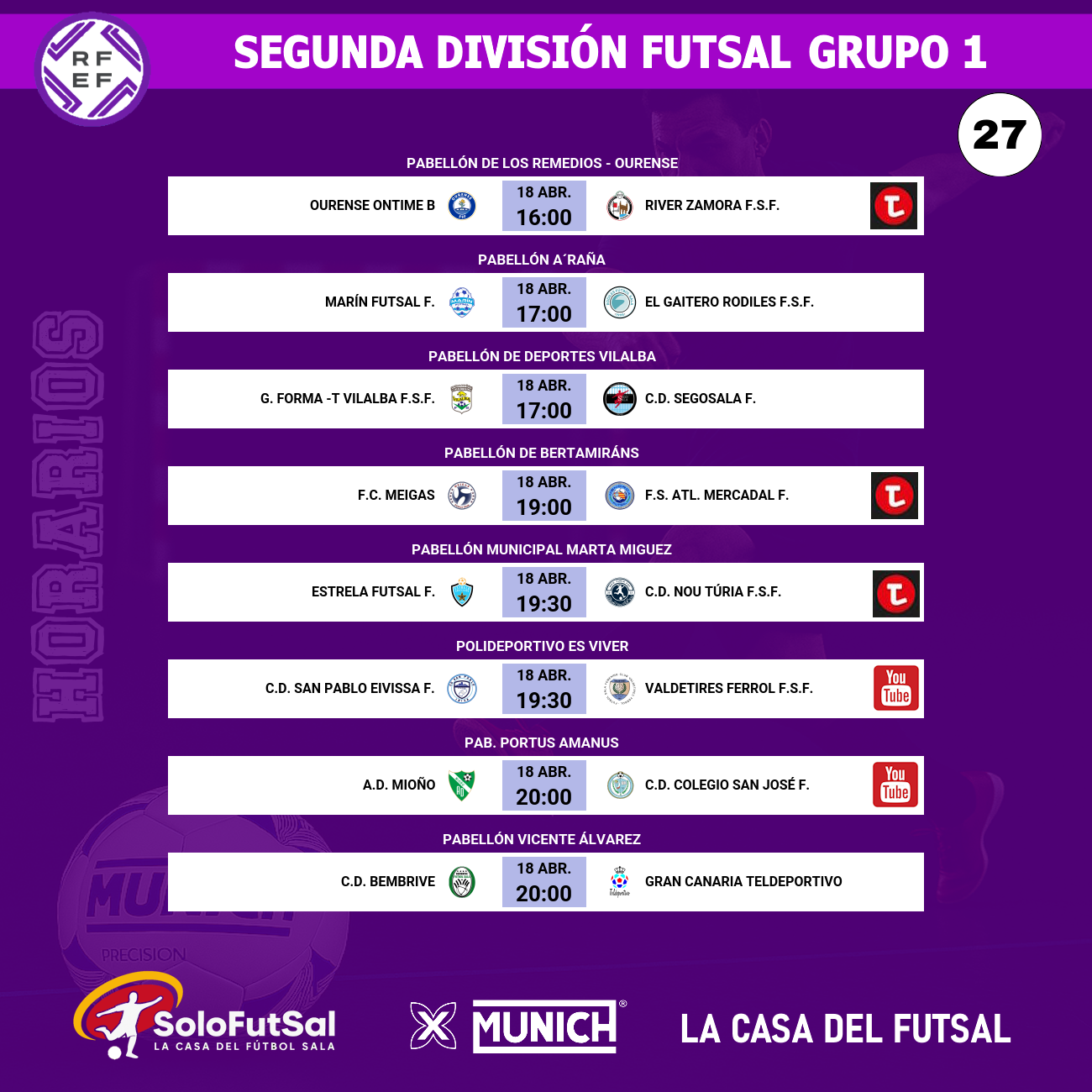 El contexto general de la jornada 27 añade aún más presión al choque. Con el Estrela Futsal (70 pts) recibiendo al C.D. Nou Túria, el liderato sigue pareciendo un coto privado, por lo que el foco de la zona noble es el Playoff (reservado a los cuatro primeros). Mientras Rodiles y Marín pelean por la plata, por detrás el C.D. Segosala (59) y el C.D. Bembrive (58) acechan cualquier error para asaltar la tercera plaza incluso, luchar por la segunda posición y asegurar su propio billete,